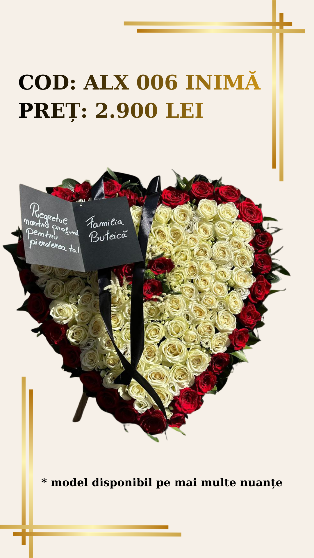 - Include: Panglică de doliu personalizabilă