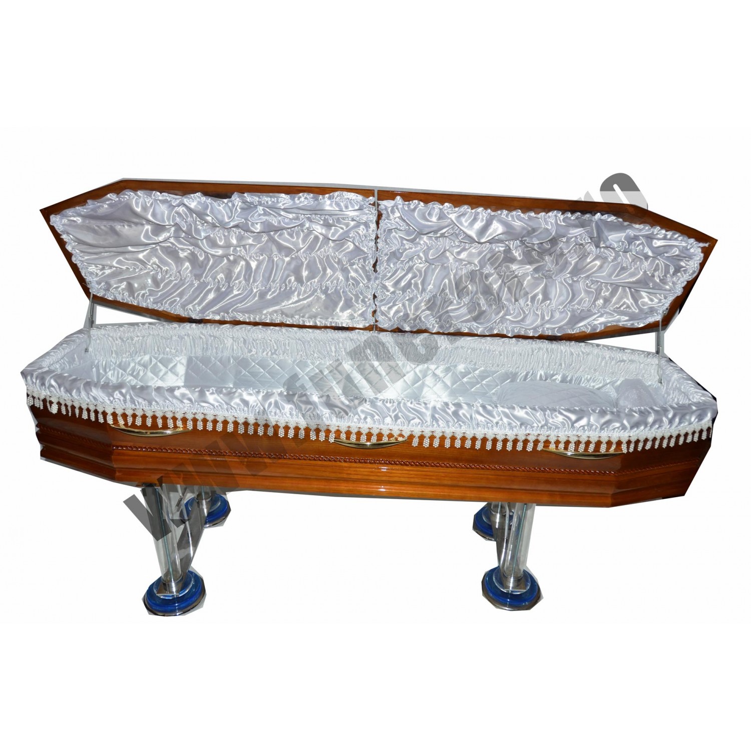 Sicriul din pachetul GOLD-PREMIUM este din lemn masiv, in stil american, cu deschidere dubla si finisaje de lux